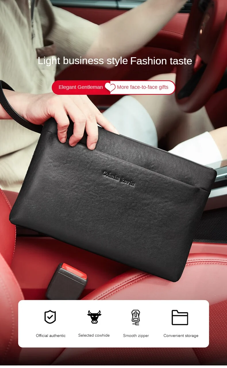 Cohnim kevin-Sac à Main en Cuir group pour Homme, Accessoire d’Affaires Décontracté, avec Tête Ronde, Couche en Cuir de Vache, Poignée Enveloppe