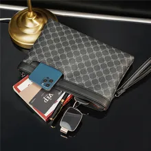 Pochette à carreaux en cuir PU pour hommes, sac enveloppe d’affaires, sacs à main pour hommes, nouveau design, luxe, mode