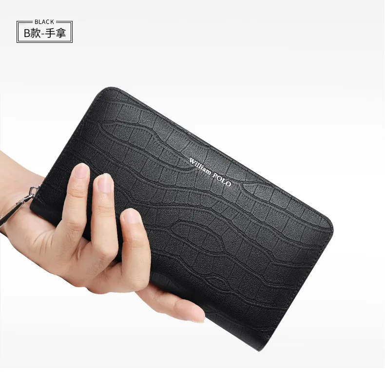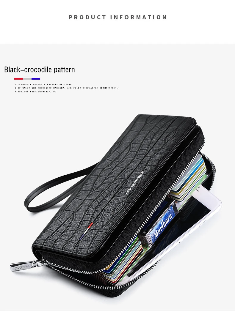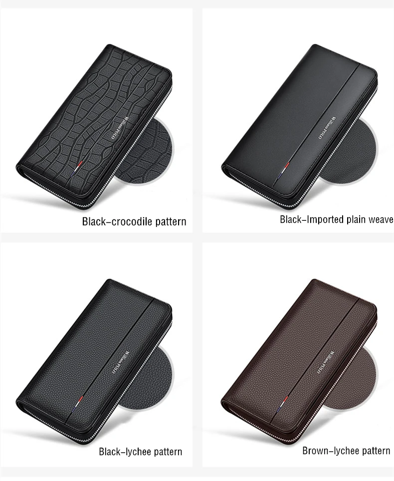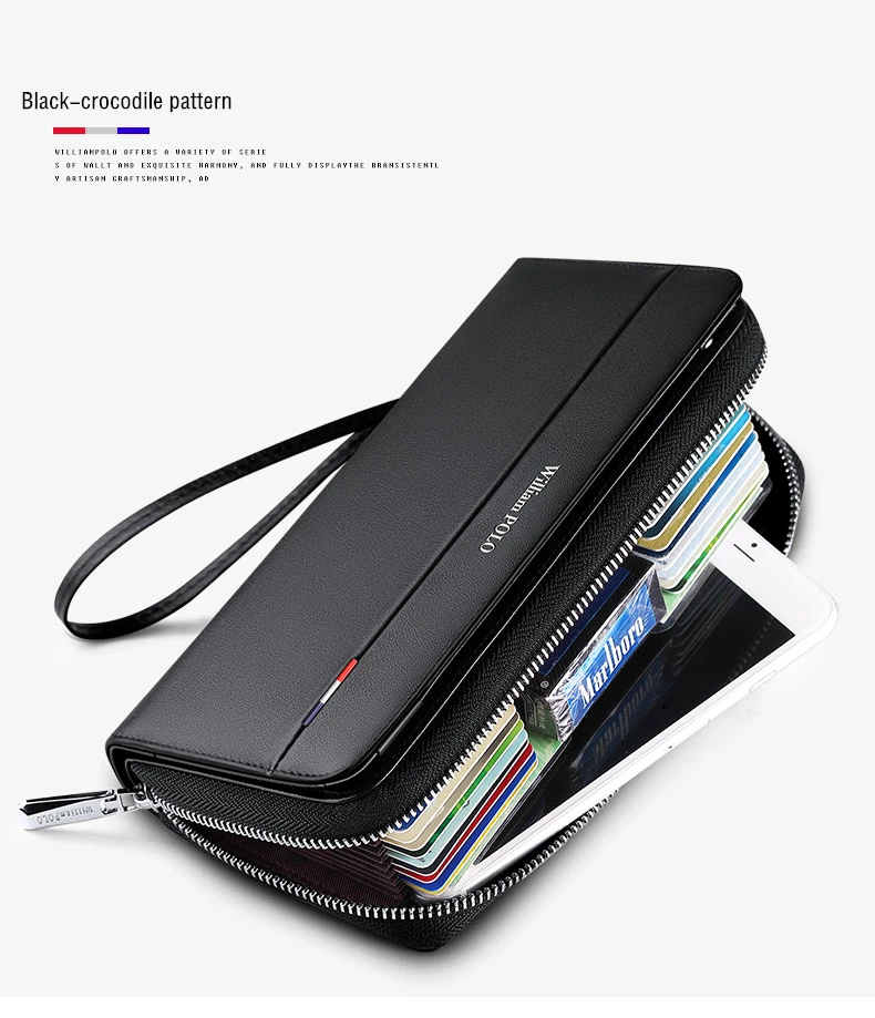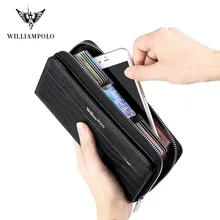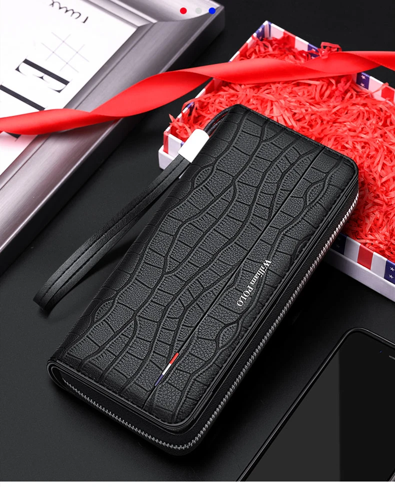WILLIAMPOLO mode hommes portefeuille porte-monnaie RFID blocage homme en cuir pochette portefeuille fermeture éclair Busines porte-carte ID argent sac mâle