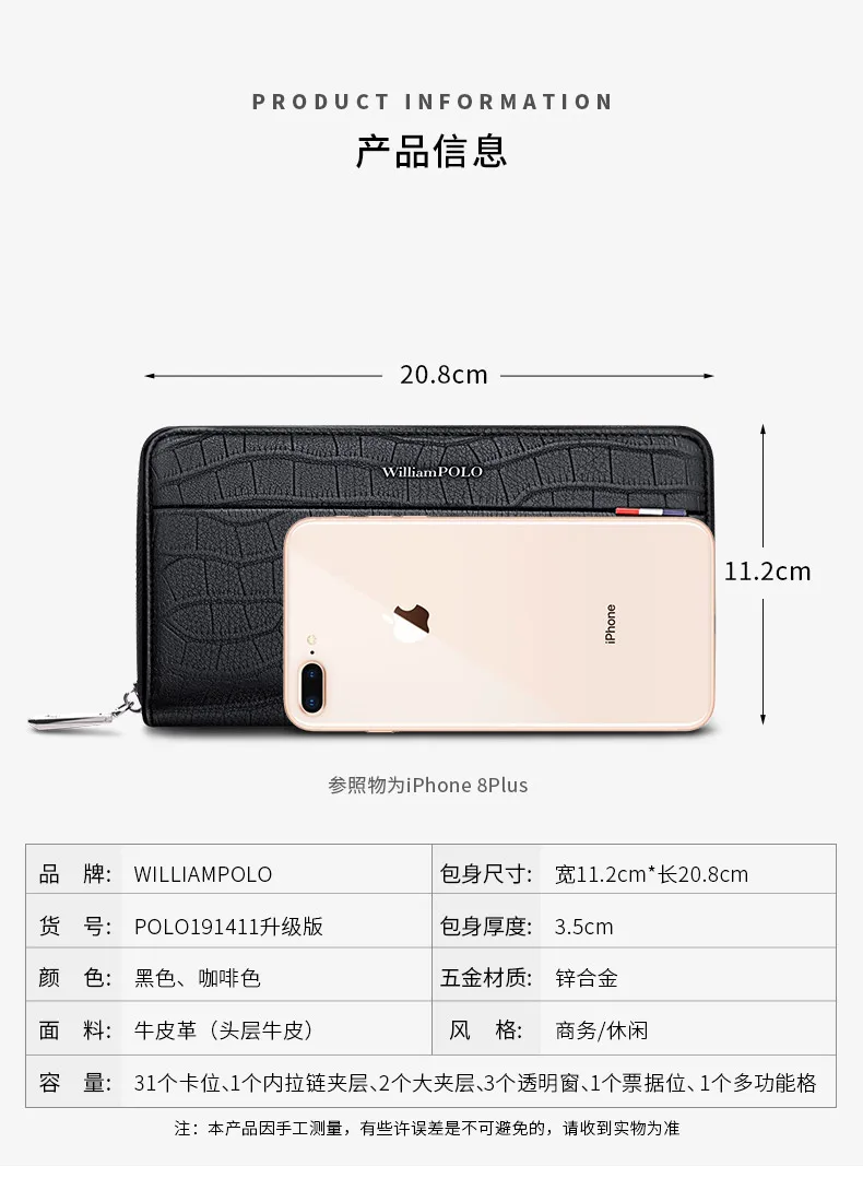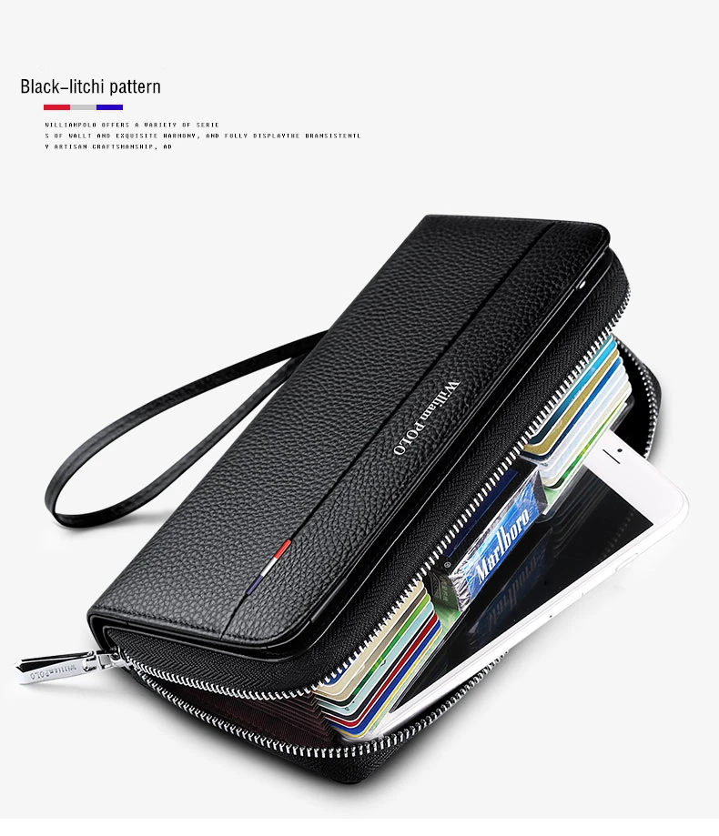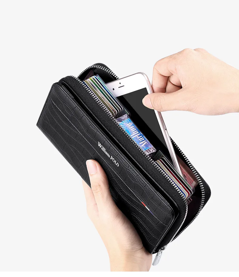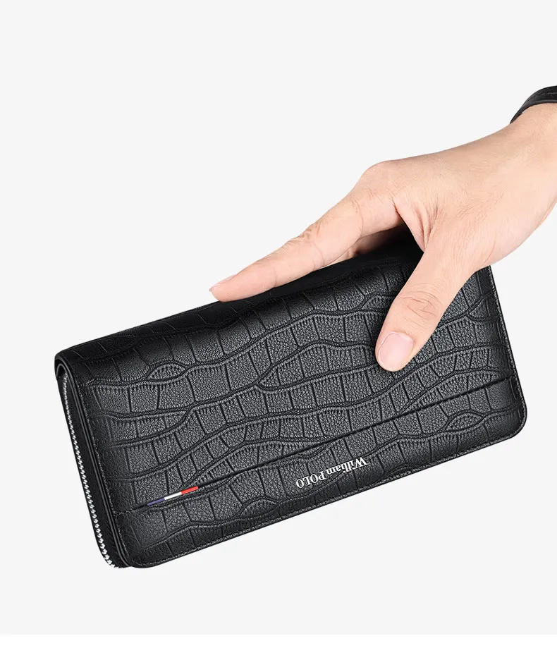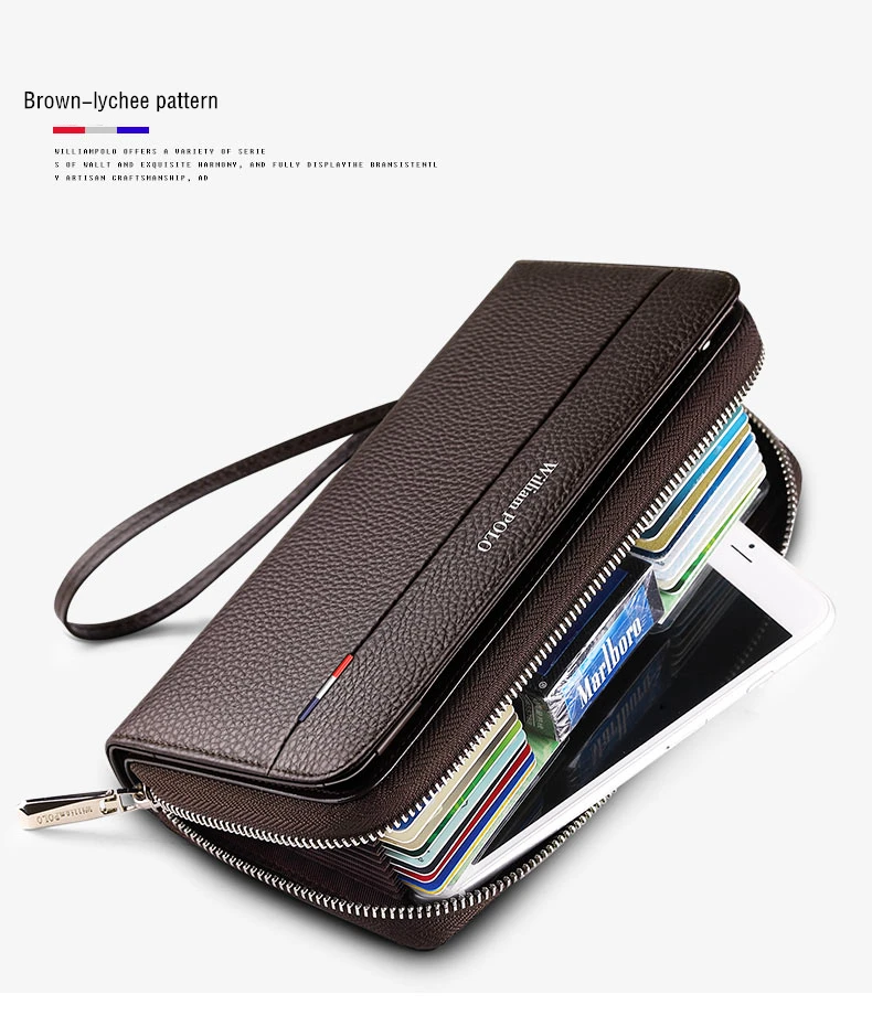 WILLIAMPOLO mode hommes portefeuille porte-monnaie RFID blocage homme en cuir pochette portefeuille fermeture éclair Busines porte-carte ID argent sac mâle