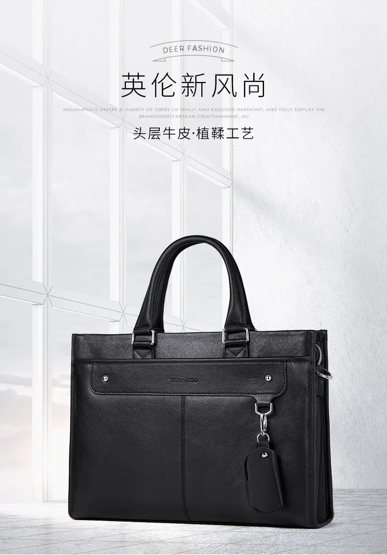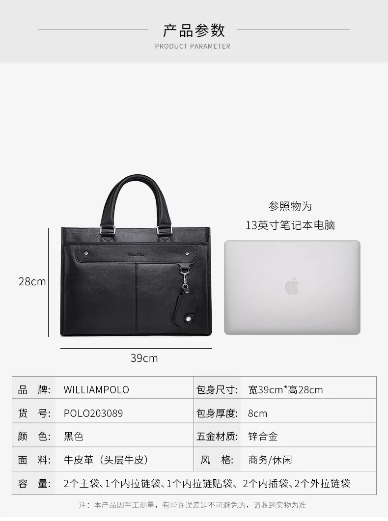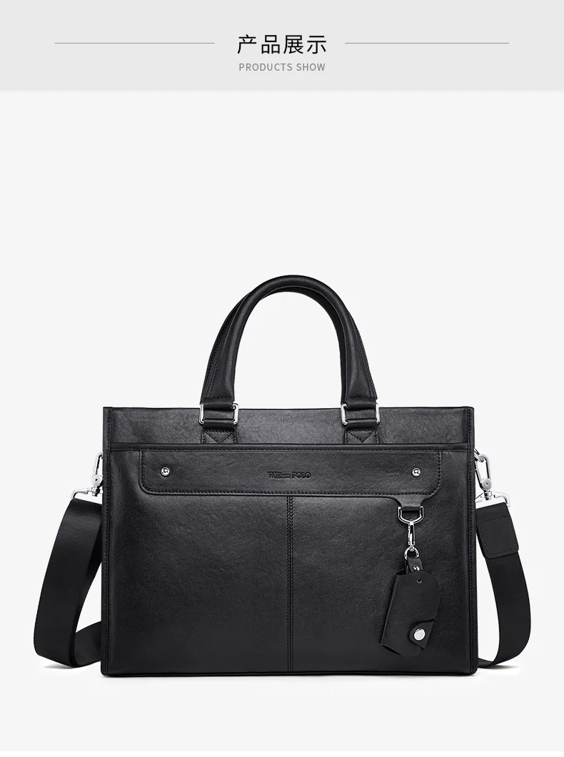 WILLIAMPOLO Hommes Porte-Documents Vache En Cuir Sac À Bandoulière Ordinateur Portable Messenger Sac Grande Capacité Hommes Sac À Main
